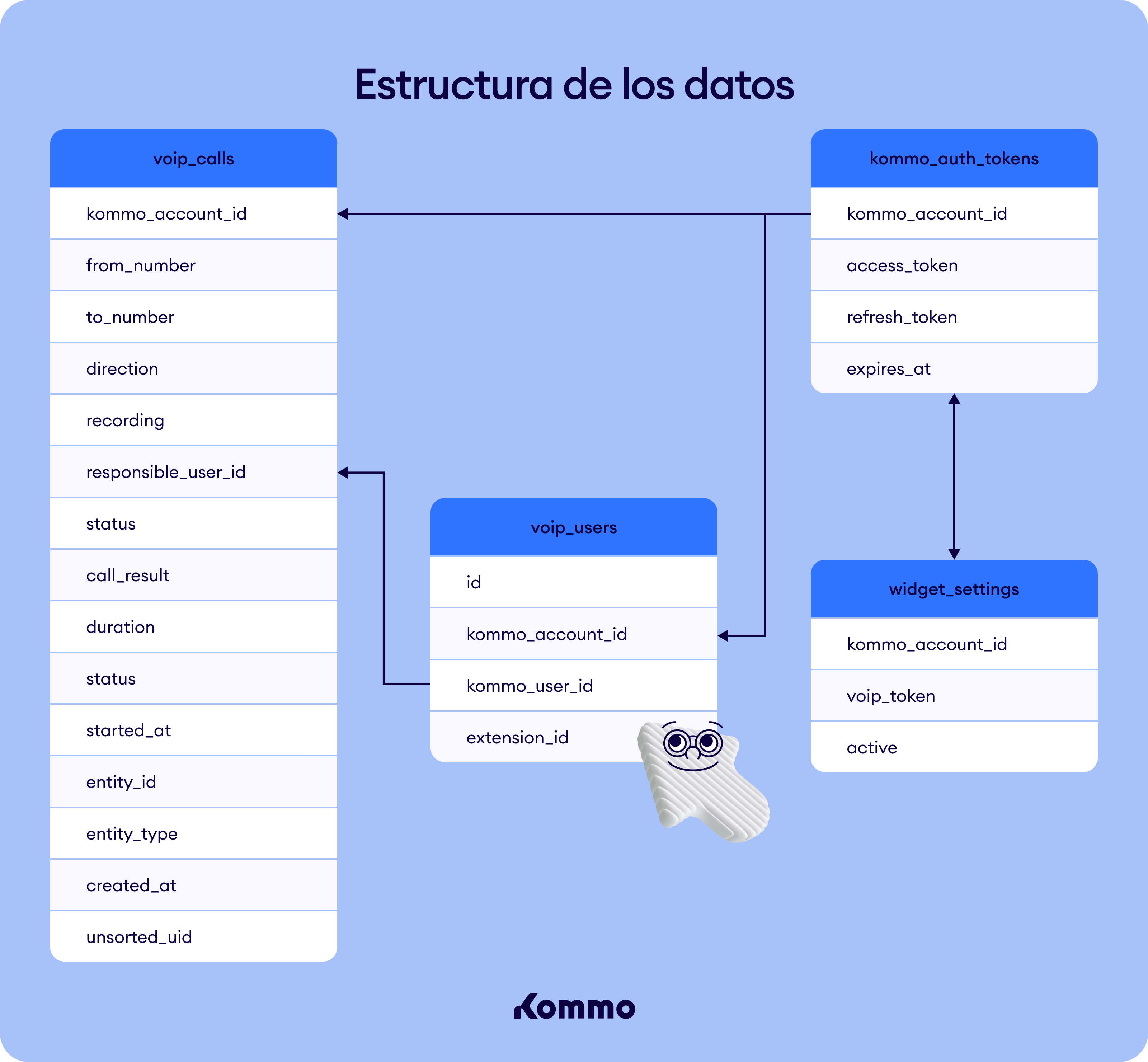 | kommo_user_id | Usuario de Kommo al que se le asigna una extensión. |