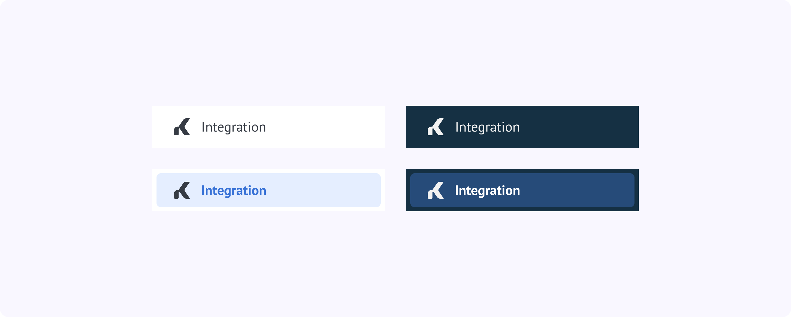 - Ten en cuenta también los estados activos con fondo: #E5EEFF (tema claro) y #264B79 (tema oscuro)