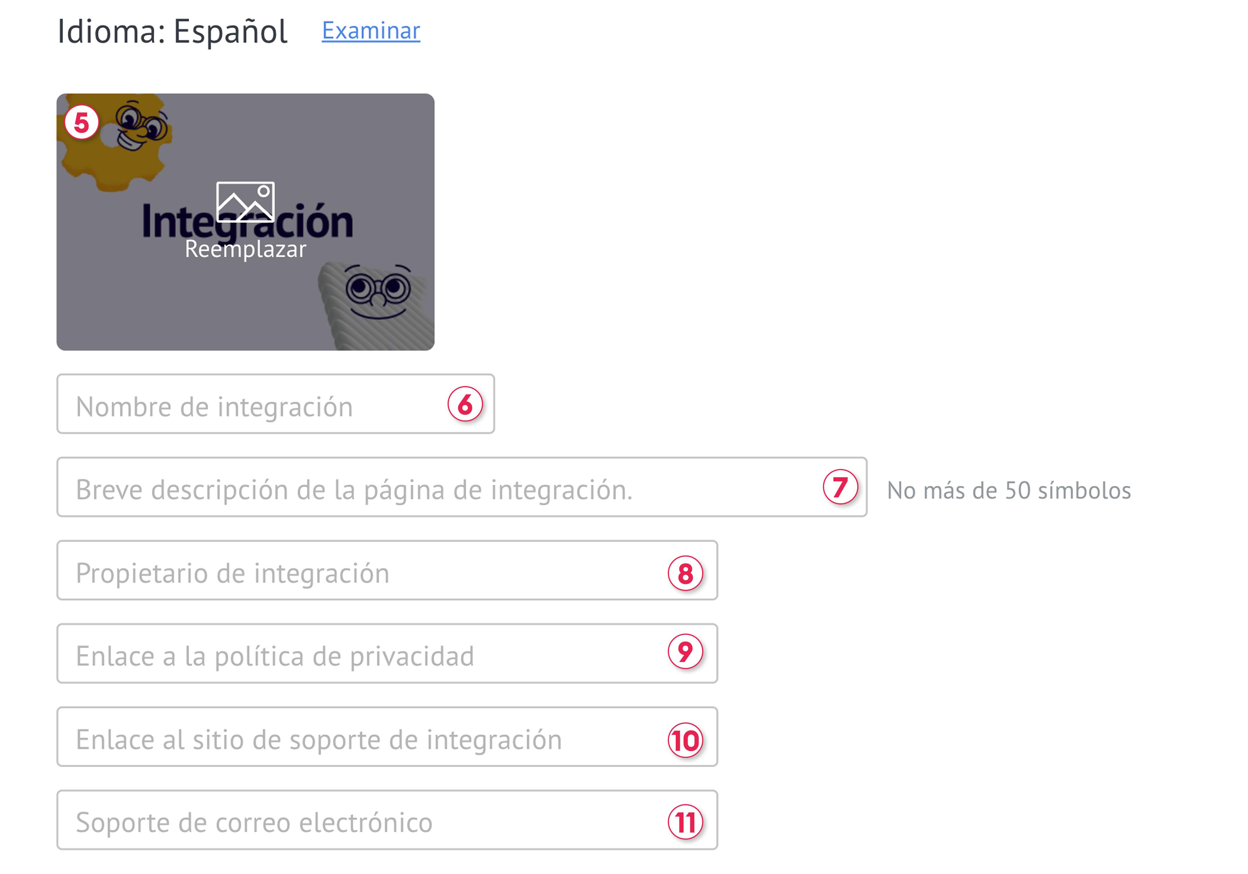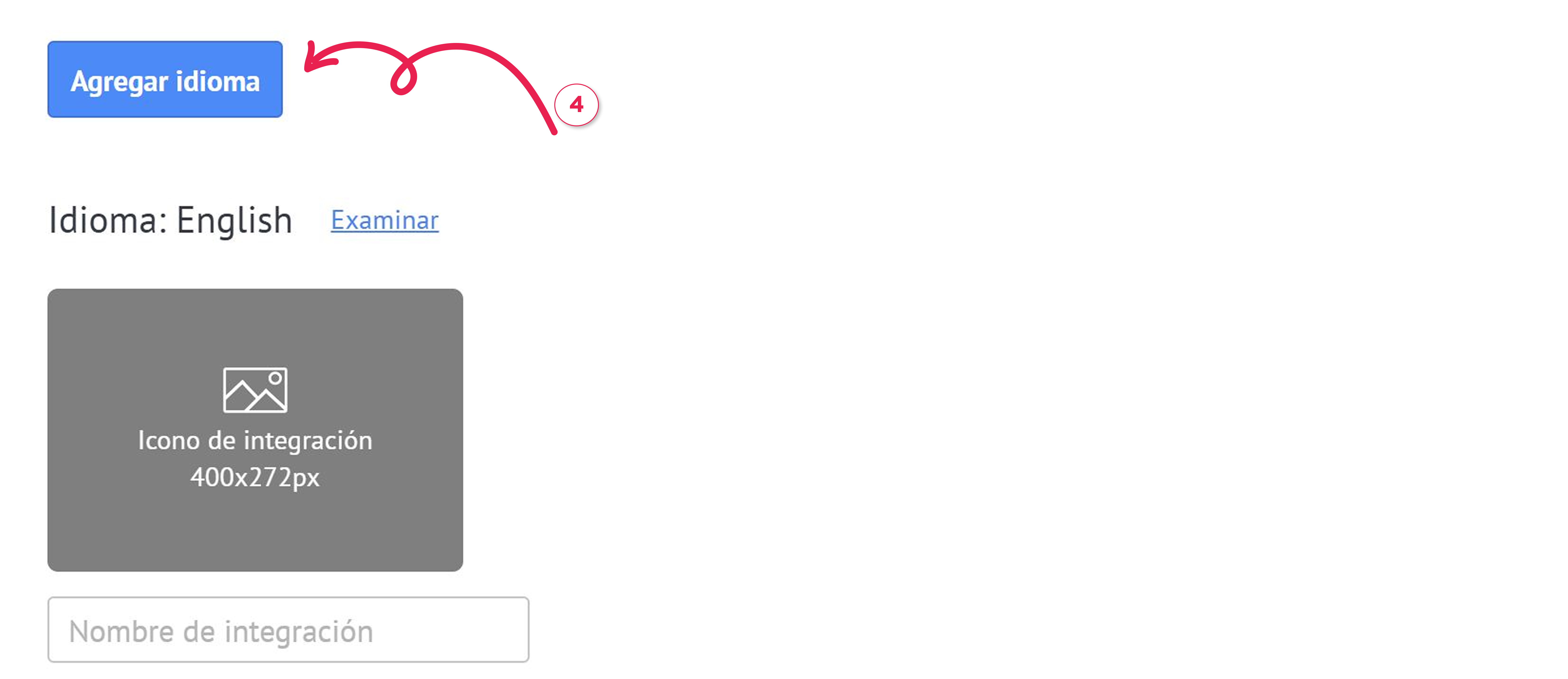 Luego, debes completar la información de la integración para todos los idiomas que has elegido.